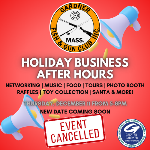 Join us for a Holiday Business After Hours at the Gardner Fish & Gun Club on December 11 from 5–8 PM!