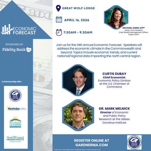 Join us for the 14th Annual Economic Forecast Breakfast sponsored by Fidelity Bank and in partnership with Nashoba Valley Chamber of Commerce, North Central MA Chamber of Commerce and North Quabbin Chamber of Commerce.